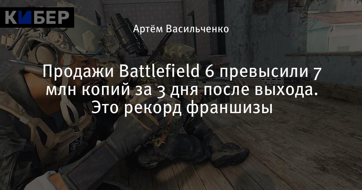 Компания Electronic Arts заявила, что продажи Battlefield 6 превысили 7 млн копий за 3 дня после выхода. Это лучший результат в истории франшизы. Разработчики добавили, что игроки провели более 172 млн матчей.