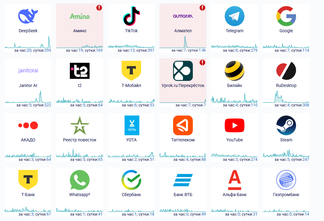 Среди сервисов и приложений утром, 17 октября, массовые сбои наблюдаются в работе DeepSeek и «Амино».