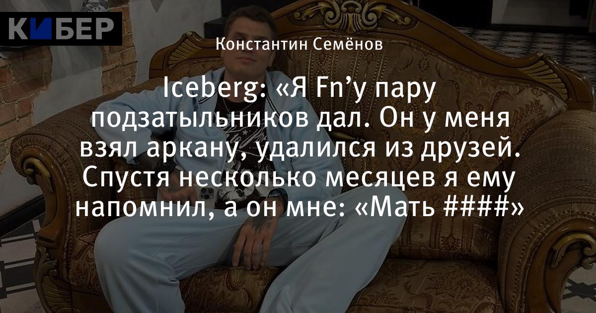 Iceberg: «Я Fn’у пару подзатыльников дал. Он у меня взял аркану, удалился из друзей. Спустя несколько месяцев я ему напомнил, а он мне: «Мать ####»
