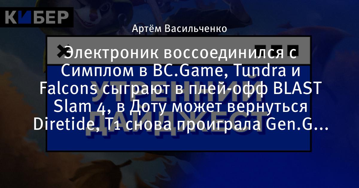 Электроник воссоединился с Симплом в BC.Game, Tundra и Falcons сыграют в плей-офф BLAST Slam 4, в Доту может вернуться Diretide, T1 снова проиграла Gen.G и другие новости утра