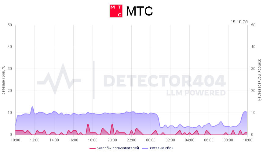 По данным сайтов «Сбой.рф» и Downdetector.su, за последний час поступают сообщения о проблемах в работе МТС из регионов: