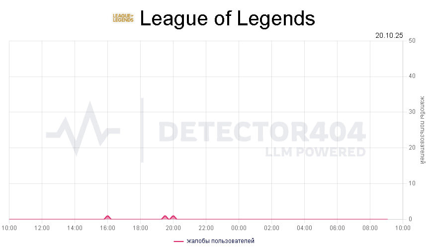 Согласно Downdetector, на сбой в ЛоЛ сегодня жалуются жители Москвы и регионов. Всего за сутки на проблемы с игрой пожаловались 3 раза.