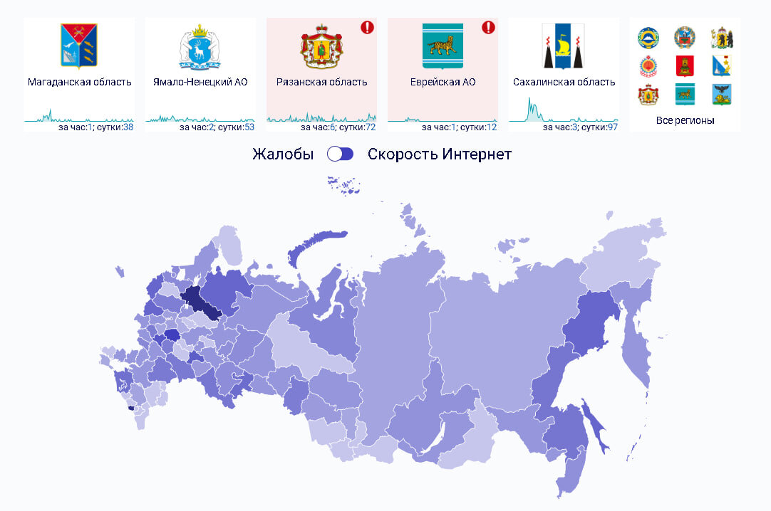 По областям на проблемы в основном жалуются жители Москвы, Санкт-Петербурга и Хабаровского края. Данные взяты с сайта «Сбой.рф». Downdetector.su также подтверждает увеличившееся количество жалоб на сбои и проблемы в Приморском крае и Краснодарском крае.