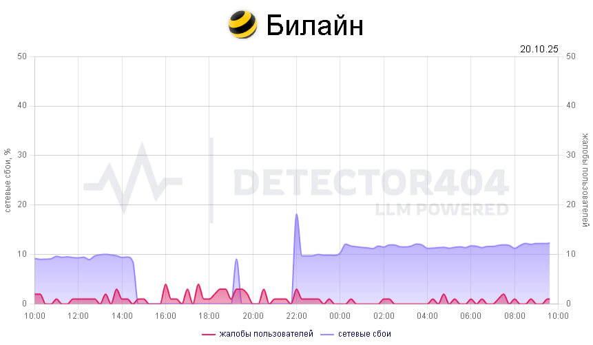 По данным сайтов «Сбой.рф» и Downdetector.su, за последний час поступают сообщения о проблемах в работе Билайна из регионов: