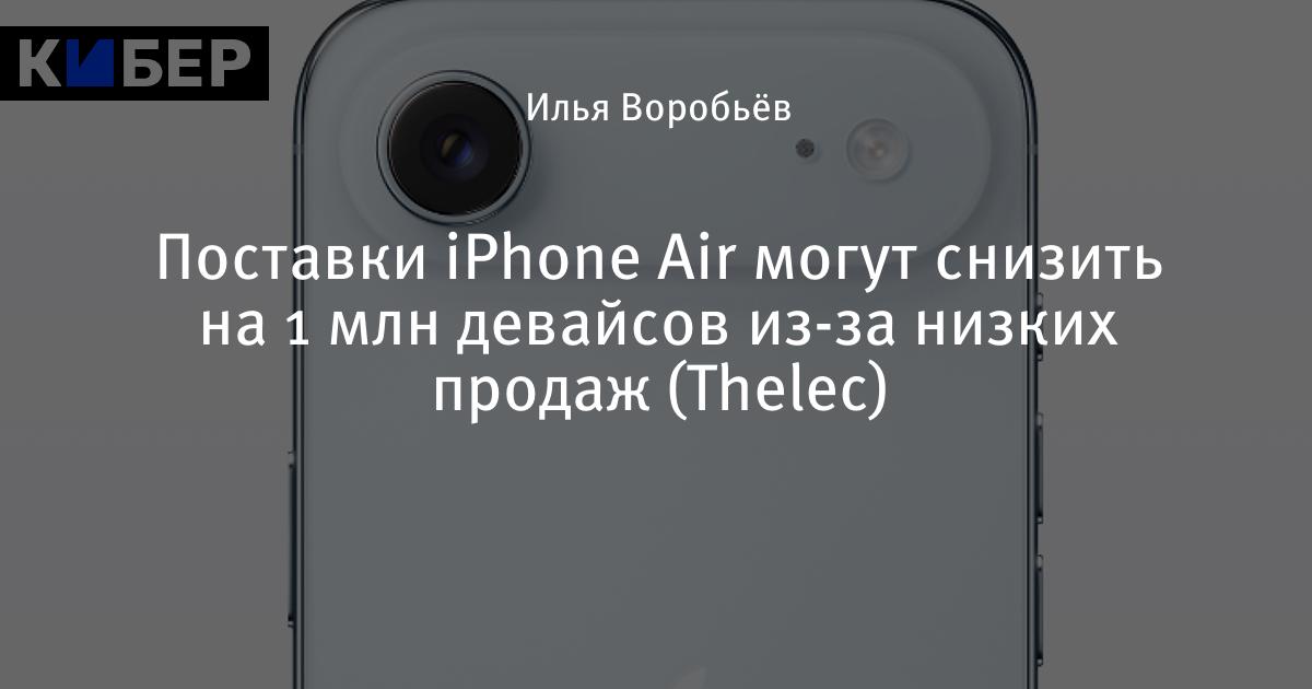 Поставки iPhone Air могут снизить на 1 млн девайсов из-за низких продаж (Thelec)