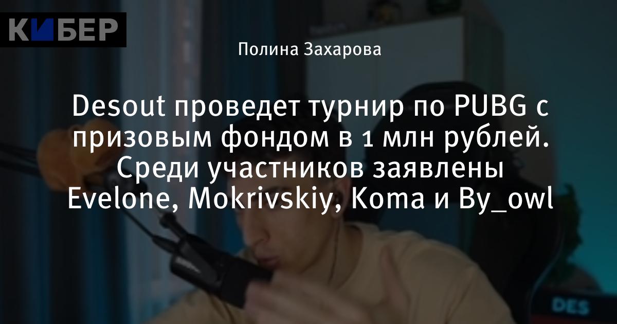Des0ut проведет турнир по PUBG с призовым фондом в 1 млн рублей. Среди участников заявлены Evelone, Mokrivskiy, Koma и By_owl