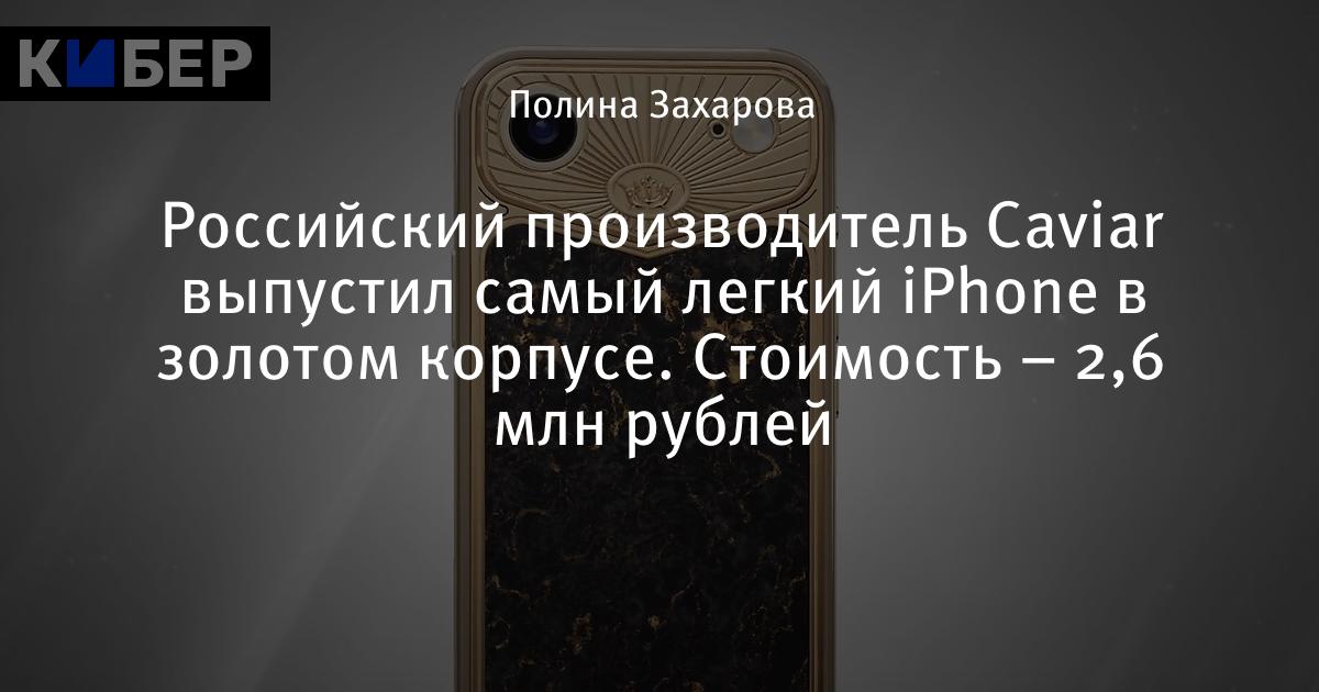 Российский производитель Caviar выпустил самый легкий iPhone в золотом корпусе. Стоимость – 2,6 млн рублей