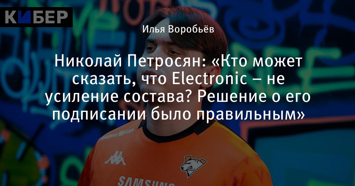 В спорте невозможно не быть амбициозным. Невозможно не купить Электроника: «Да не, нормально, нас устраивает топ-5». Это противоречит нашему ДНК. Но в то же время любой трансфер – все равно какой-то гемблинг, какая-то лотерея. Мы говорим о живых людях. Особенно в киберспорте, где нет ротации состава», – подытожил Николай Петросян.