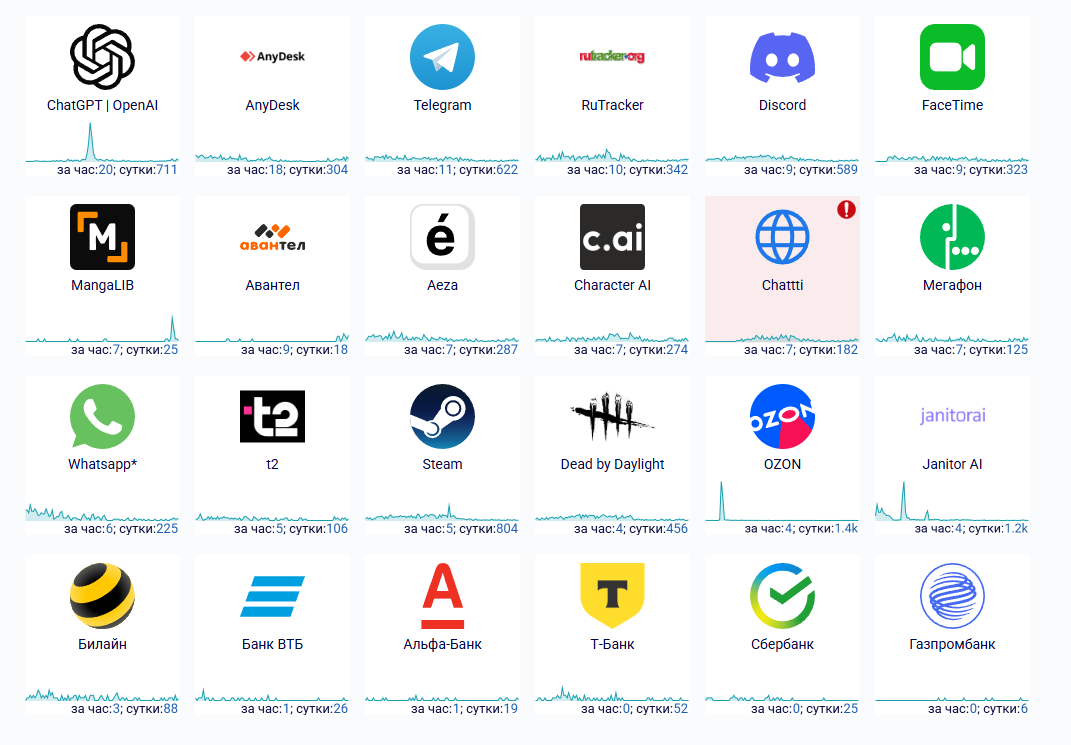 Среди сервисов и приложений утром, 24 октября, массовые сбои наблюдаются в работе ChatGPT и AnyDesk.