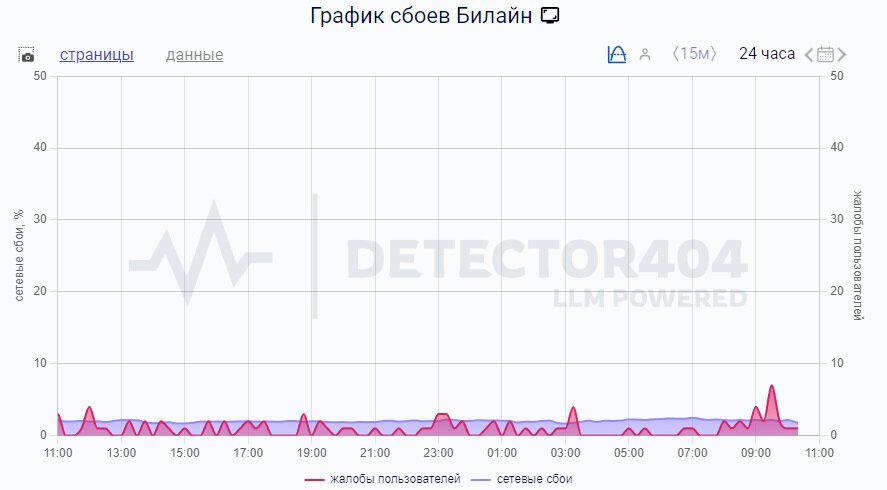 По данным сайтов «Сбой.рф» и Downdetector.su, за последний час поступают сообщения о проблемах в работе Билайна из регионов: