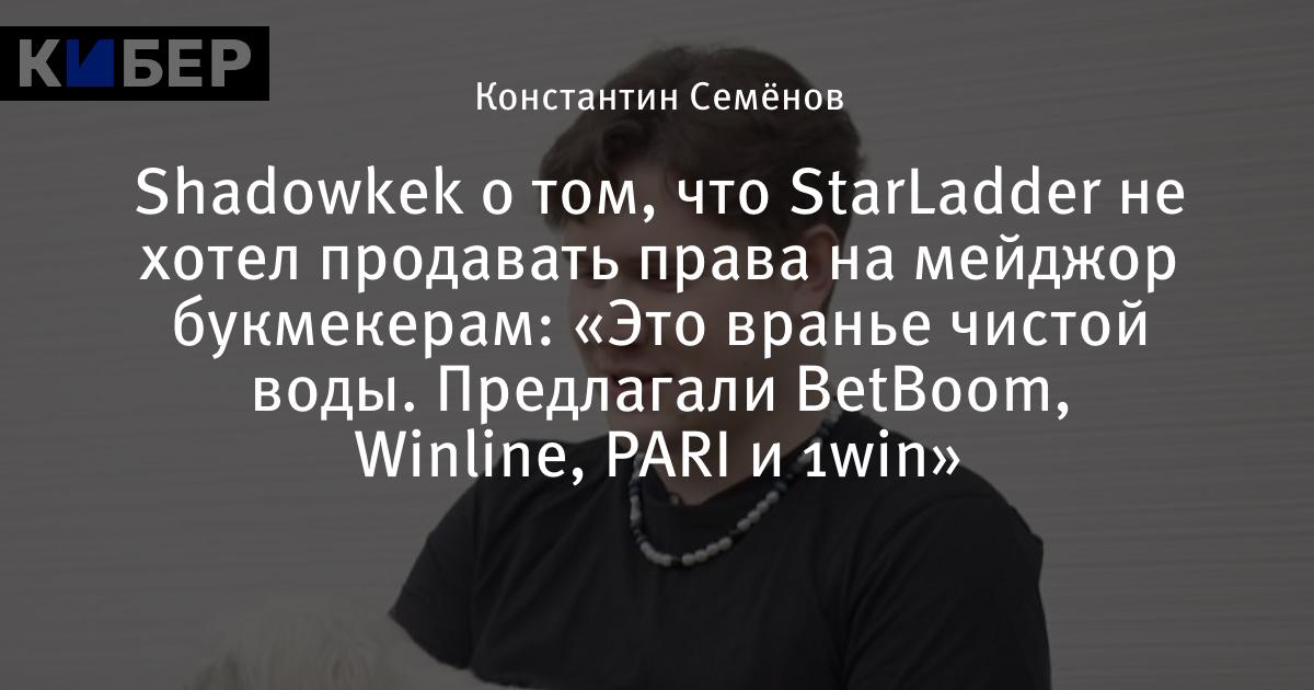 Shadowkek о том, что StarLadder не хотел продавать права на мейджор букмекерам: «Это вранье чистой воды. Предлагали BetBoom, Winline, PARI и 1win»