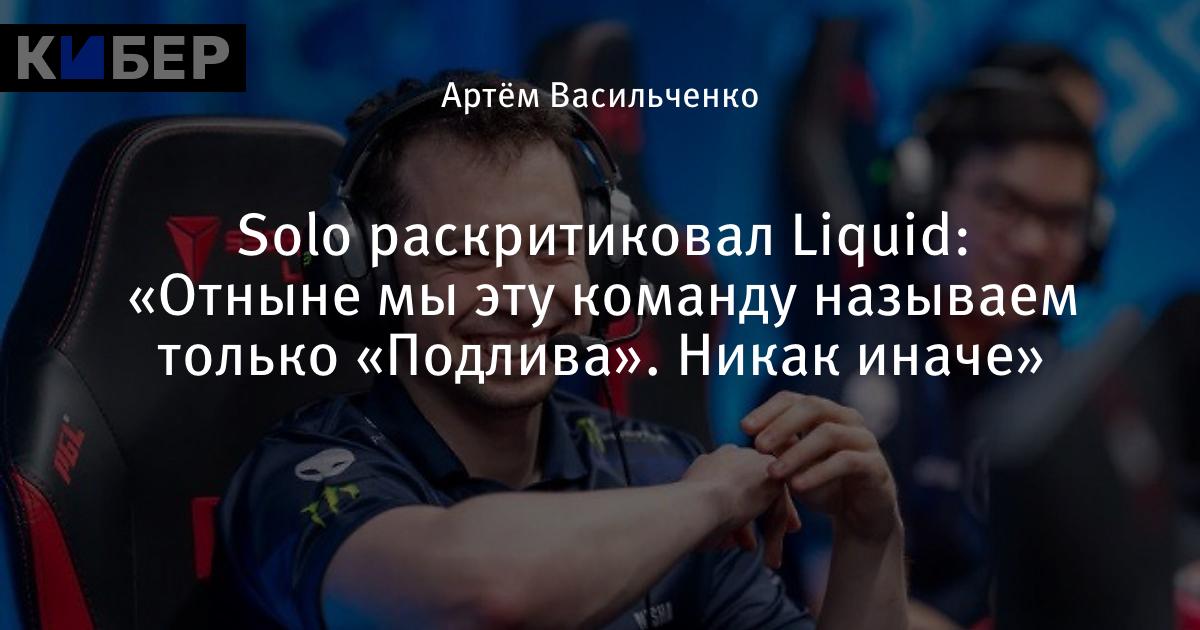 Solo раскритиковал Liquid: «Отныне мы эту команду называем только «Подлива». Никак иначе»