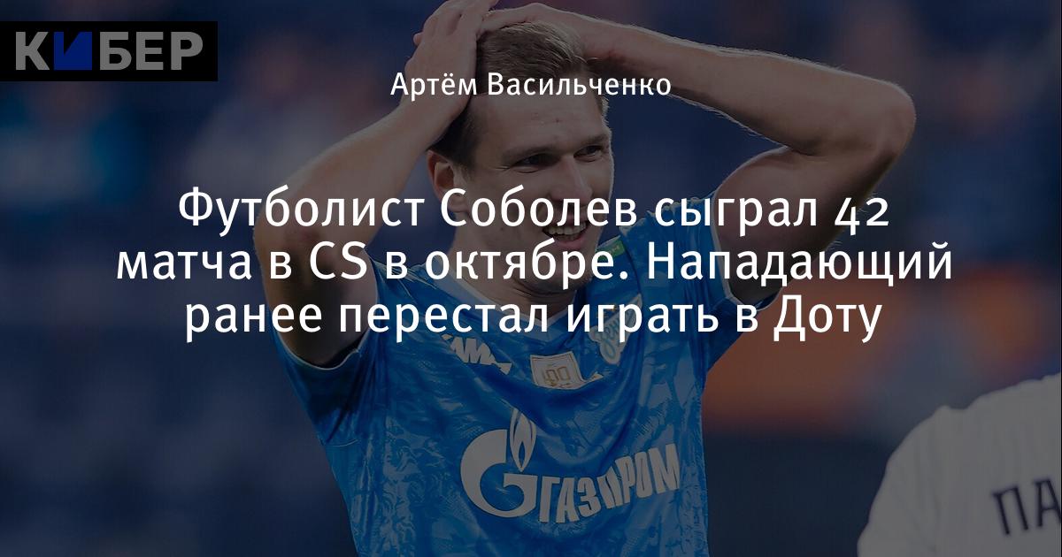Футболист Соболев сыграл 42 матча в CS в октябре. Нападающий ранее перестал играть в Доту