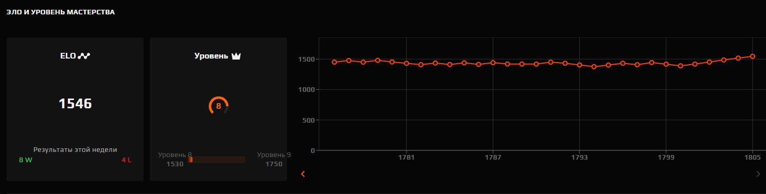 На данный момент в активе футболиста 1805 матчей на платформе Faceit (1,04 по KDA). Соболеву для 9-го уровня аккаунта осталось набрать 220 эло (Кибер: рейтинг игроков на Faceit). Сейчас у него 1546 эло.