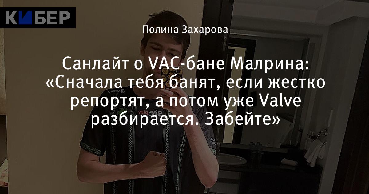 Санлайт о VAC-бане Малрина: «Сначала тебя банят, если жестко репортят, а потом уже Valve разбирается. Забейте»