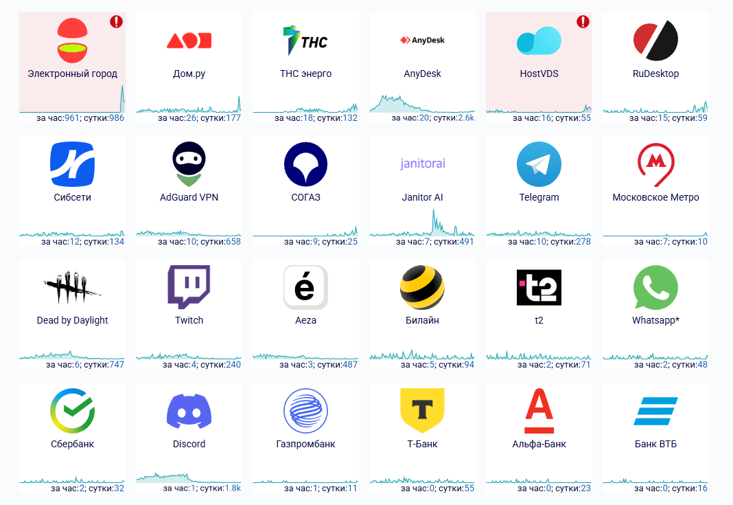 Среди сервисов и приложений утром, 28 октября, массовые сбои наблюдаются в работе «Электронного города» и AnyDesk.