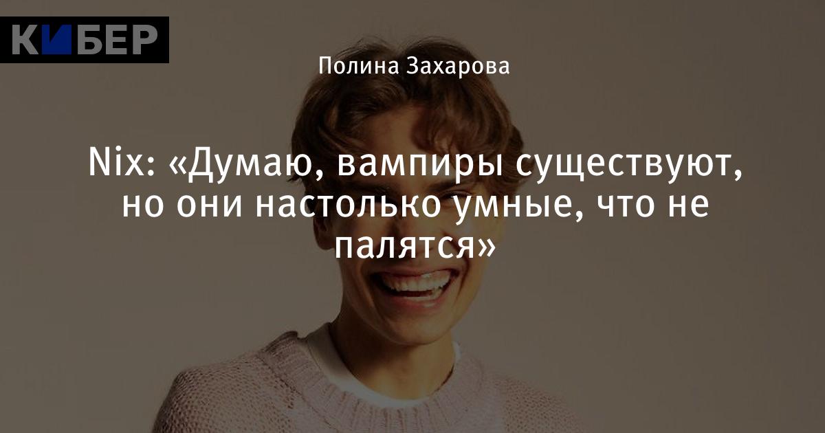 [А ты, в теории, можешь поверить вампиров?] Думаю, вампиры существуют, но они настолько умные, что не палятся», – заключил Александр «Nix» Левин.