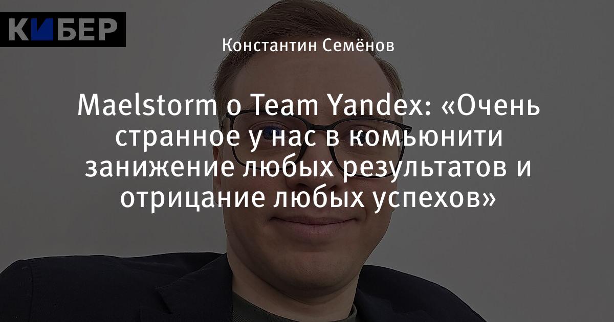 Maelstorm о Team Yandex: «Очень странное у нас в комьюнити занижение любых результатов и отрицание любых успехов»