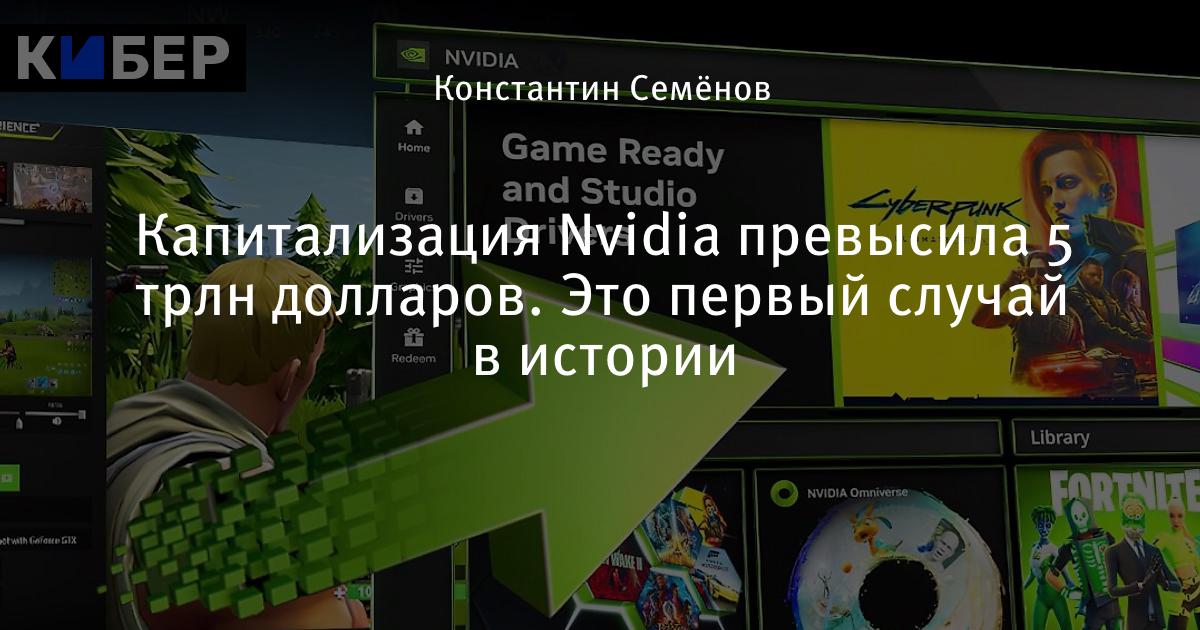 Капитализация Nvidia превысила 5 трлн долларов. Это первый случай в истории
