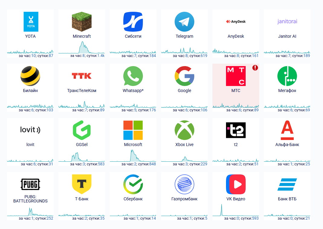 Среди сервисов и приложений утром, 30 октября, массовые сбои наблюдаются в работе Minecraft и «Сибсети».