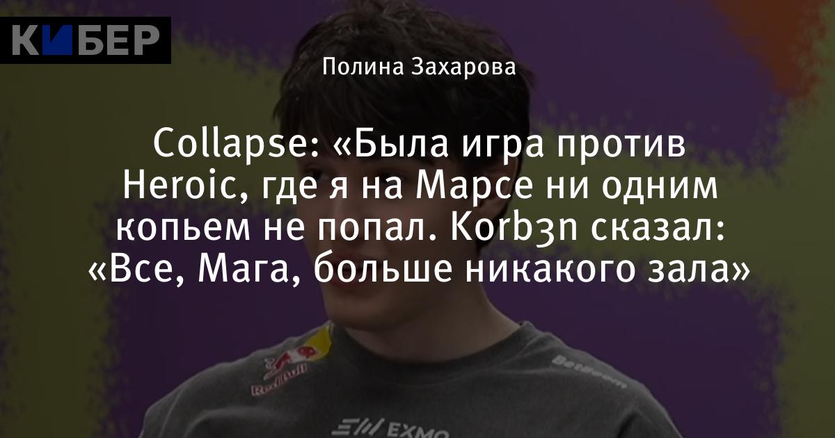 Collapse: «Была игра против Heroic, где я на Марсе ни одним копьем не попал. Korb3n сказал: «Все, Мага, больше никакого зала»