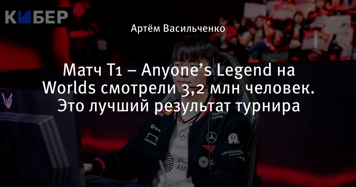 Четвертьфинальный матч между T1 (Южная Корея) и Anyone’s Legend (Китай) стал самым популярным на чемпионате мира по League of Legends. За встречей следили 3,2 млн зрителей (без китайских платформ).