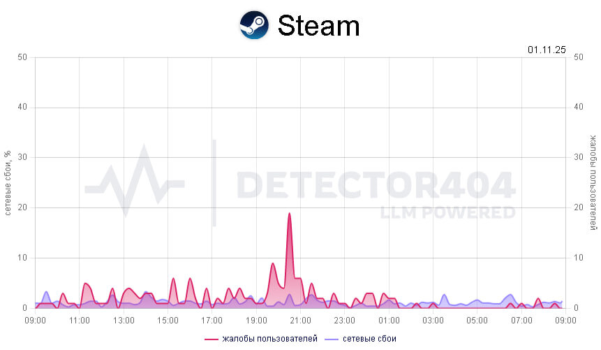 По данным сайтов «Сбой.рф» и Downdetector.su, за последний час поступают сообщения о проблемах в работе Steam из всех регионов РФ.