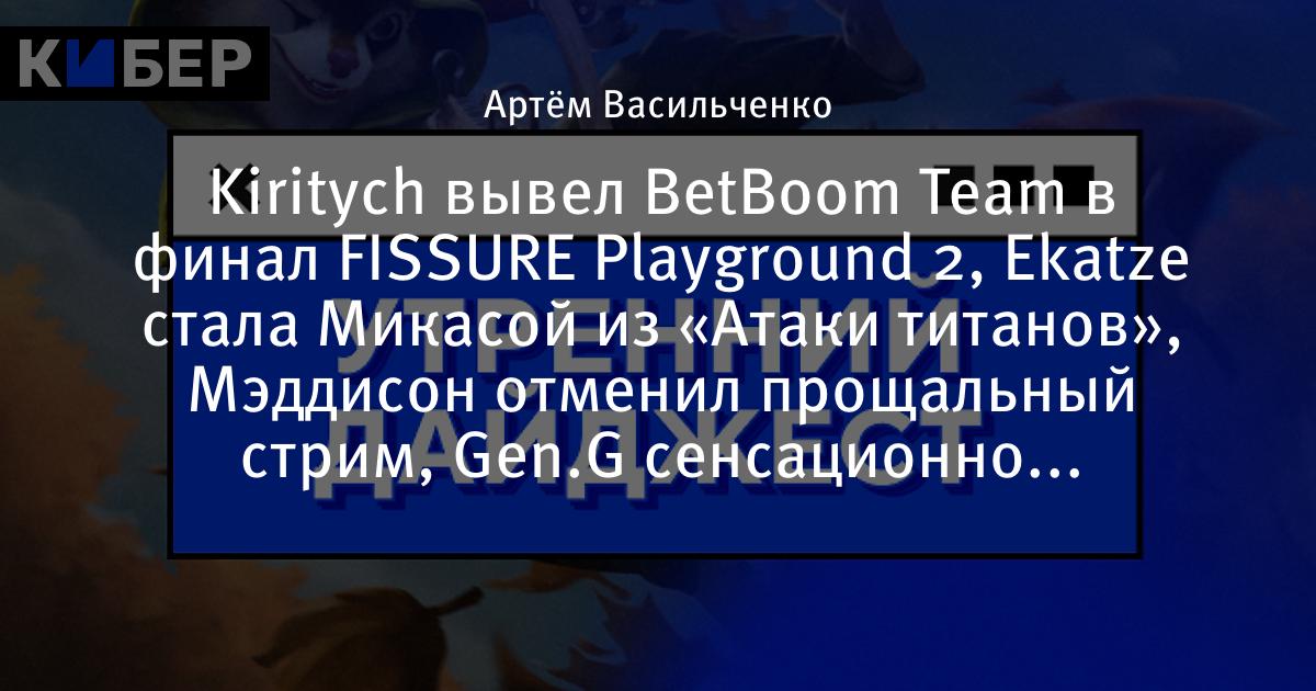 Kiritych вывел BetBoom Team в финал FISSURE Playground 2, Ekatze стала Микасой из «Атаки титанов», Мэддисон отменил прощальный стрим, Gen.G сенсационно покинула Worlds и другие новости утра