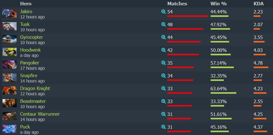 Чаще всего в пиках команд появлялся Jakiro – 54 раза (винрейт – 44,44%). Следом расположились Tusk (48 пиков – 47,92% винрейт) и Gyrocopter (44 – 45,45%).
