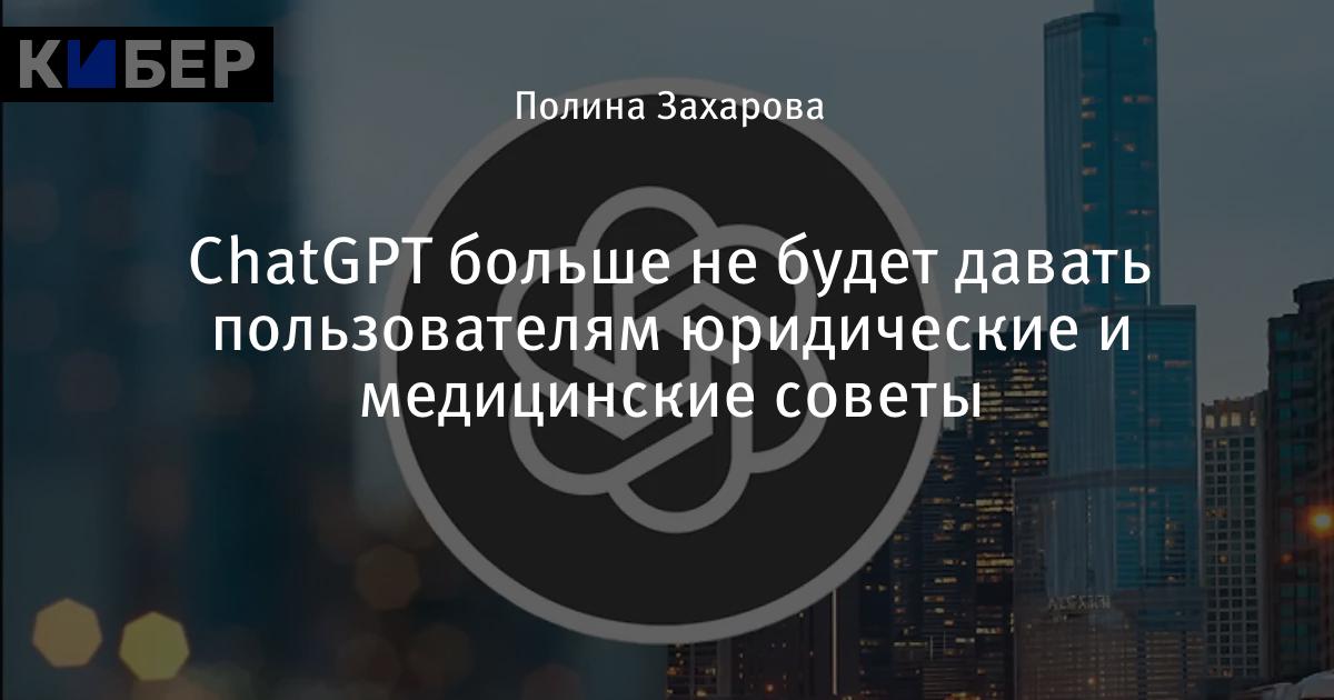 OpenI выпустила обновление для ChatGPT, в котором запретили ИИ-боту давать советы, касающиеся юридических и медицинских моментов.