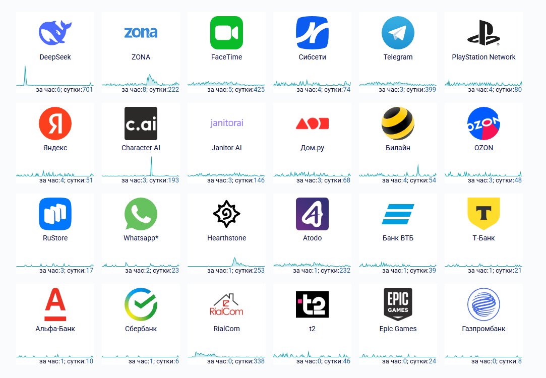 Среди сервисов и приложений утром, 4 ноября, массовые сбои наблюдаются в работе DeepSeek и FaceTime.