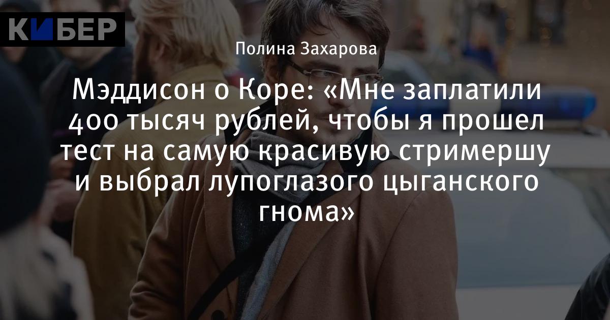 Мэддисон о Коре: «Мне заплатили 400 тысяч рублей, чтобы я прошел тест на самую красивую стримершу и выбрал лупоглазого цыганского гнома»