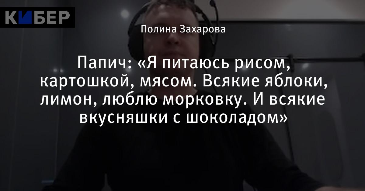 «Я питаюсь рисом, картошкой, мясом. Еще бывает гречневая каша. Всякие яблоки, лимон, люблю морковку. Фундук. И всякие вкусняшки с шоколадом, но сейчас подобное мне нравится. Должно быть суперкачественное», – подытожил Папич.