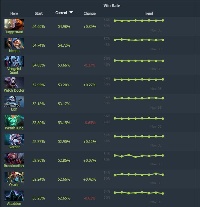 Согласно Dotabuff, в топ-5 героев по доле побед в Доте входят: