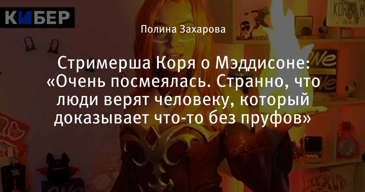 Стримерша Коря о Мэддисоне: «Очень посмеялась. Странно, что люди верят человеку, который доказывает что-то без пруфов»