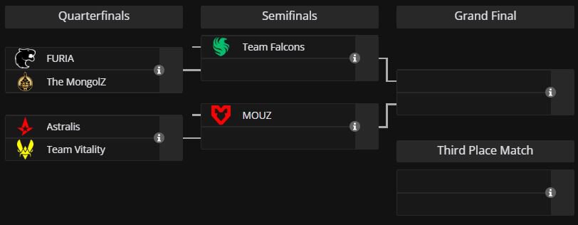 Furia, The Mongolz, Vitality и Astralis прошли в четвертьфинал турнира, Falcons и Mouz – в полуфинал.