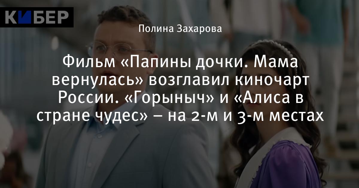 Фильм «Папины дочки. Мама вернулась» возглавил киночарт России. «Горыныч» и «Алиса в стране чудес» – на 2-м и 3-м местах