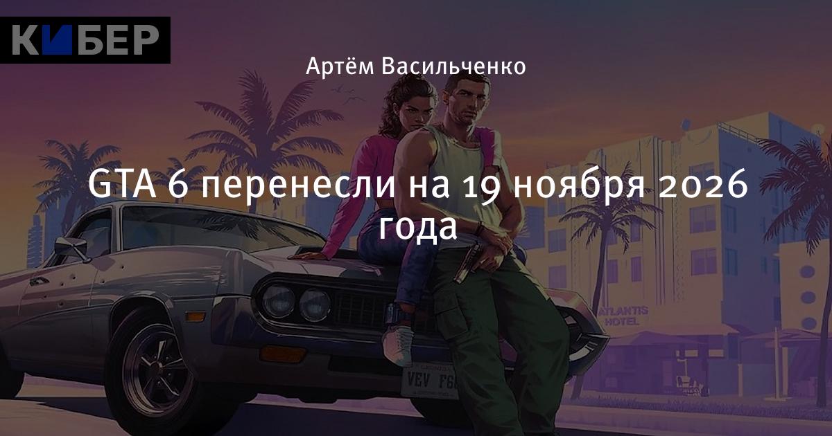 🔥GTA 6 перенесли на 19 ноября 2026 года