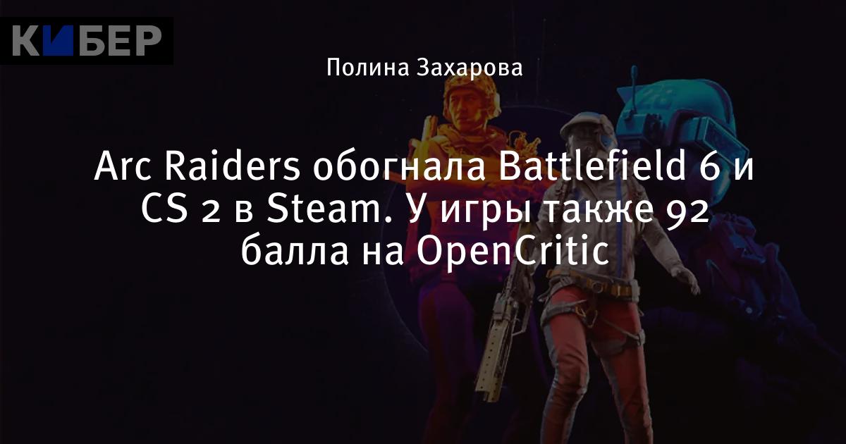 Arc Raiders обогнала Battlefield 6 и CS 2 в Steam. У игры также 92 балла на OpenCritic