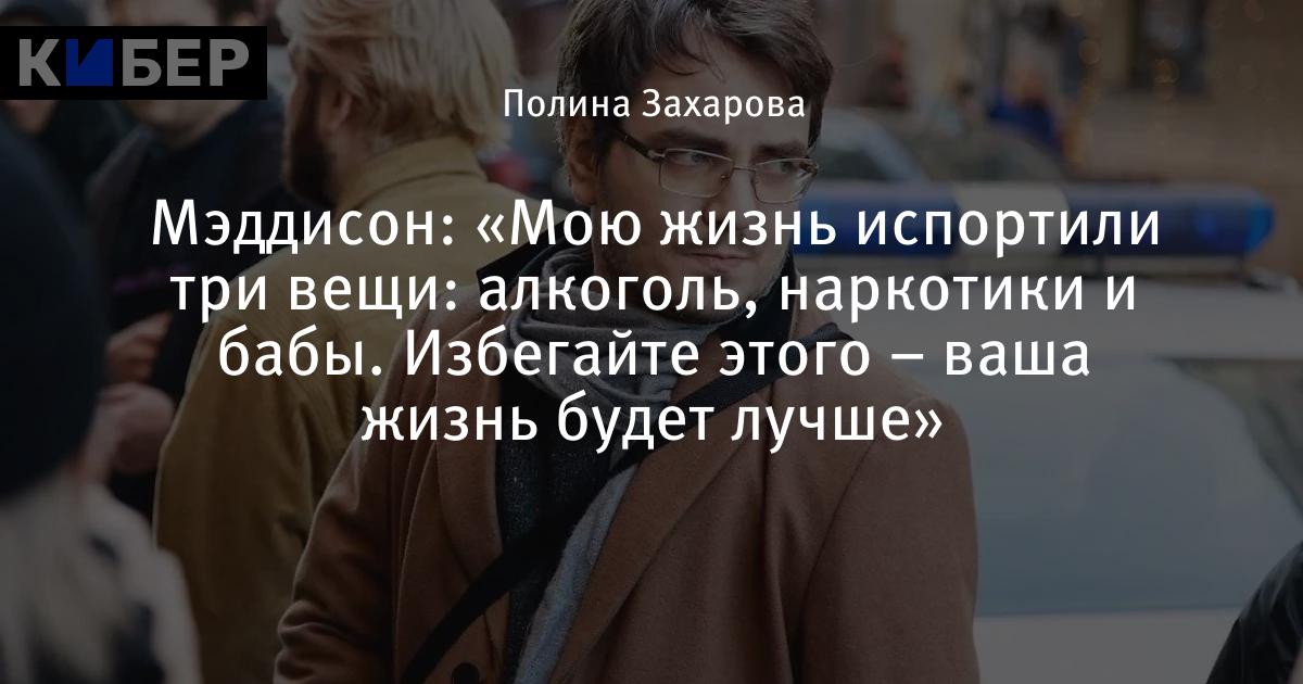 Мэддисон: «Мою жизнь испортили три вещи: алкоголь, наркотики и бабы. Избегайте этого – ваша жизнь будет лучше»