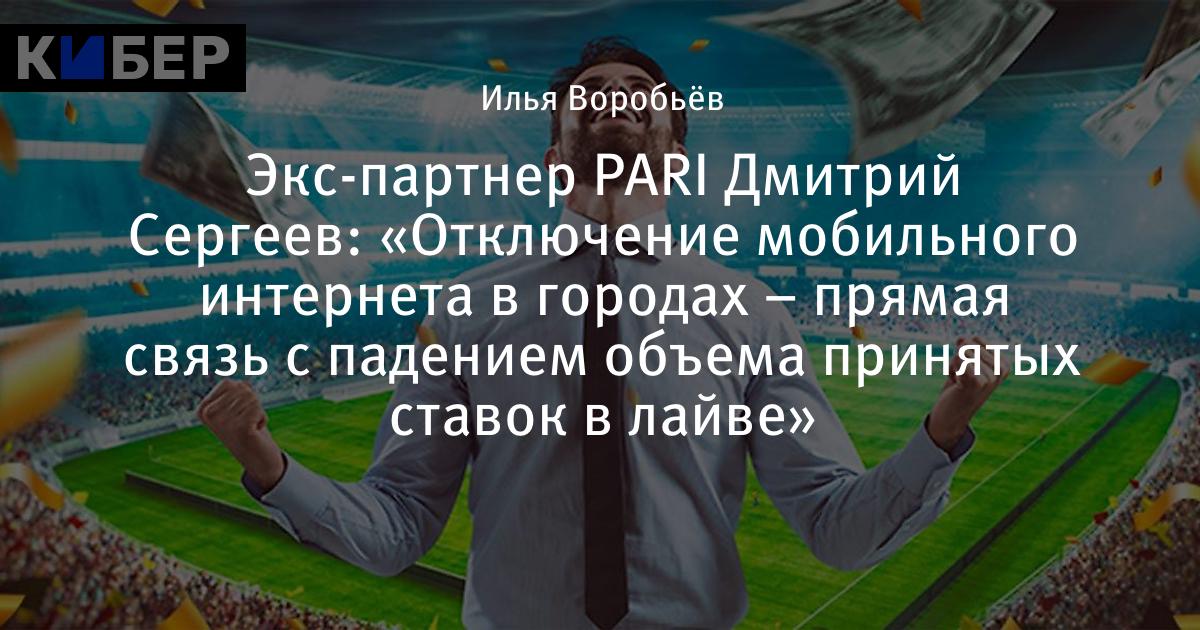 Экс-партнер PARI Дмитрий Сергеев: «Отключение мобильного интернета в городах – прямая связь с падением объема принятых ставок в лайве»