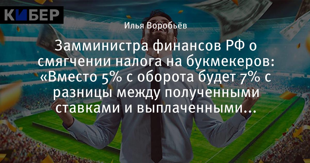 Замминистра финансов РФ о смягчении налога на букмекеров: «Вместо 5% с оборота будет 7% с разницы между полученными ставками и выплаченными выигрышами»