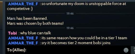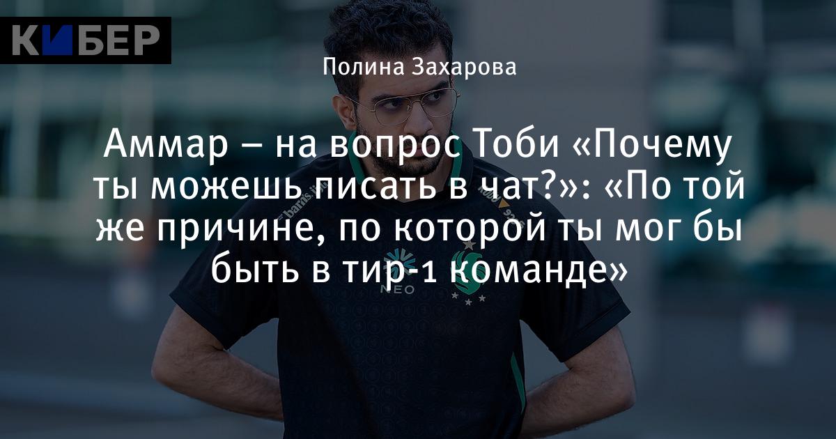 Аммар – на вопрос Тоби «Почему ты можешь писать в чат?»: «По той же причине, по которой ты мог бы быть в тир-1 команде»