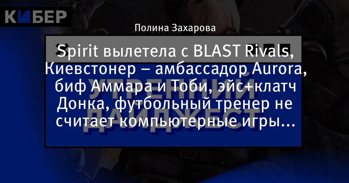 Spirit вылетела с BLAST Rivals, Киевстонер – амбассадор Aurora, биф Аммара и Тоби, эйс+клатч Донка, футбольный тренер не считает компьютерные игры спортом и другие новости утра