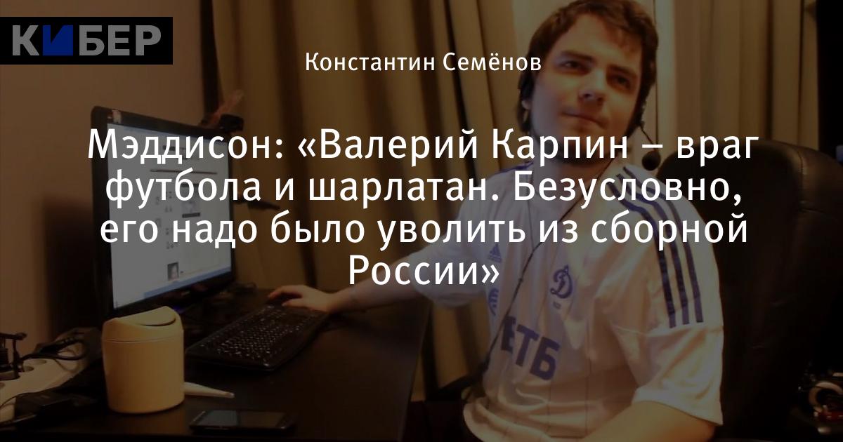 Ладно, это все шутки, конечно, но ситуация просто критическая. Валерий Карпин – это враг футбола, шарлатан. И ни к чему хорошему это все не приведет. [...]», – подытожил Мэддисон в личном телеграм-канале.