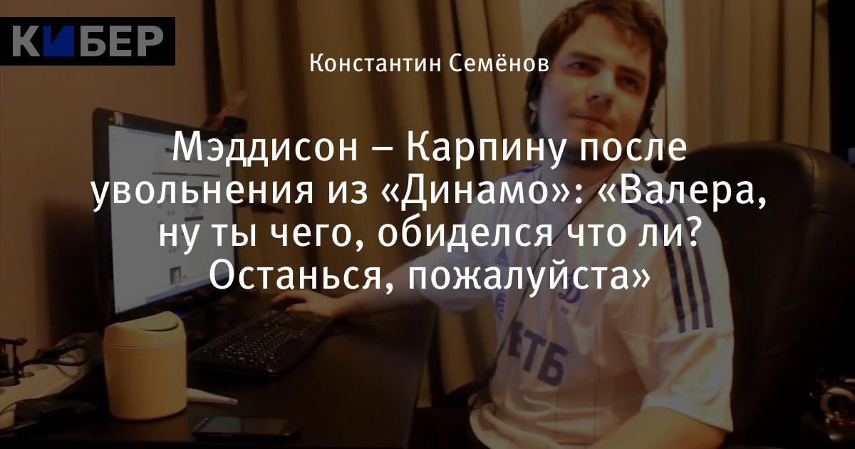 17 ноября стало известно об увольнении Валерия Карпина с поста тренера московского «Динамо». Фанат клуба и стример Илья «Maddyson» Давыдов попросил наставника вернуться.