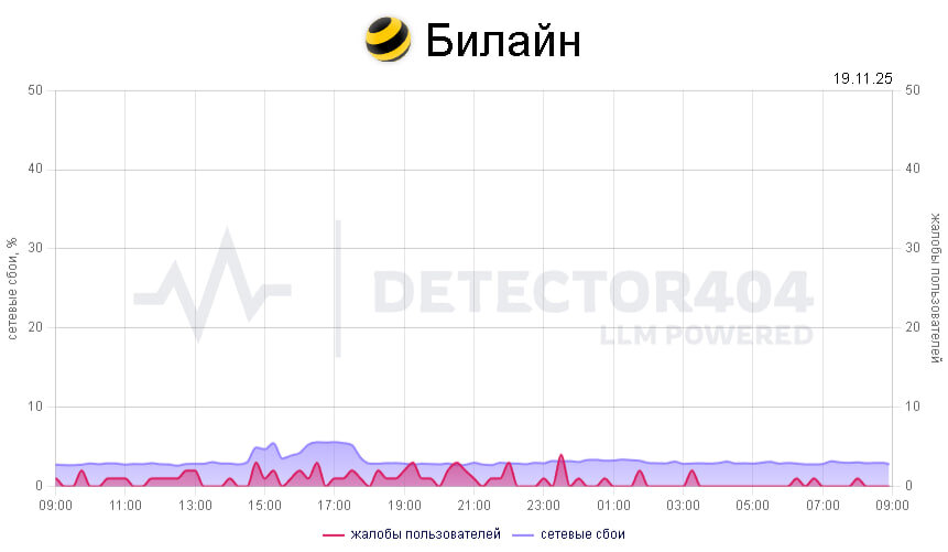 Сбой интернета Билайн сегодня, 19 ноября