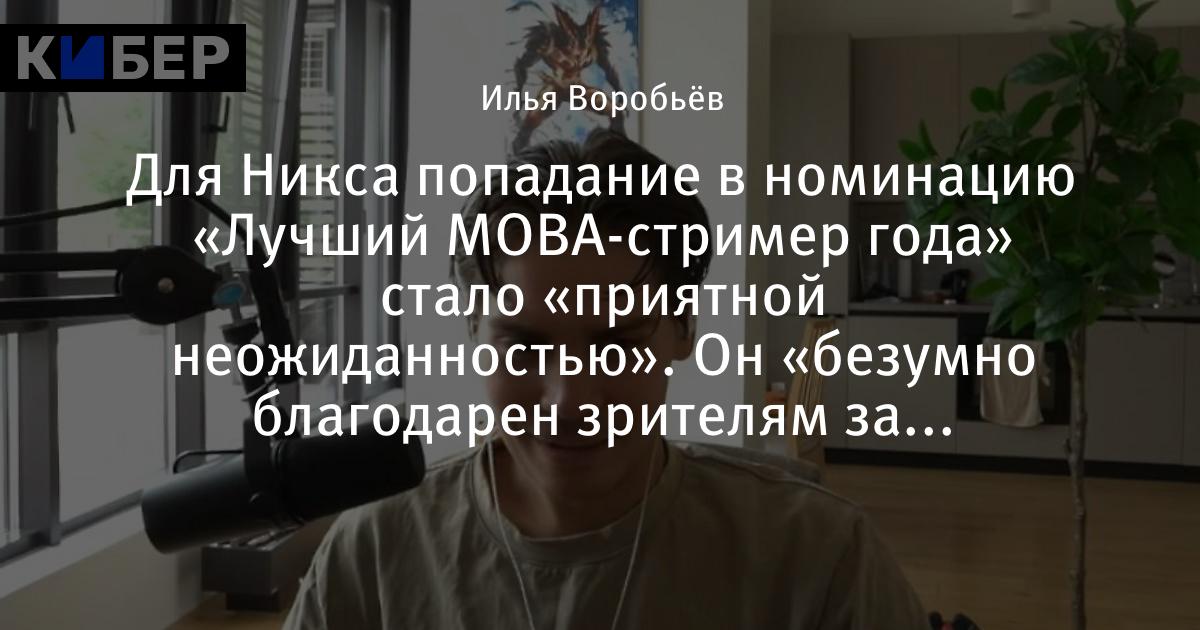 Для Никса попадание в номинацию «Лучший MOBA-стример года» стало «приятной неожиданностью». Он «безумно благодарен зрителям за поддержку»
