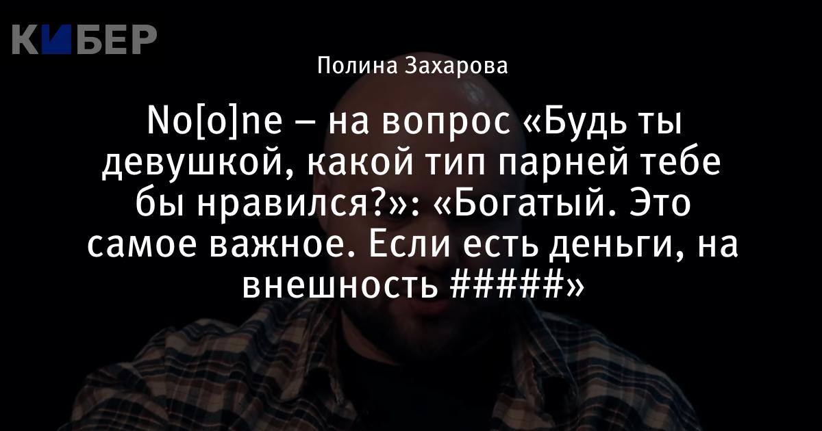 «[Будь ты девушкой, какой тип парней тебе бы нравился?] Умный, веселый, харизматичный. Богатый, это самое важное, ха-ха-ха. Если есть деньги, на внешность ##### [плевать]», – посмеялся No[o]ne.