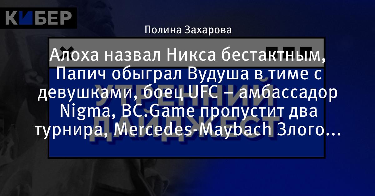 Алоха назвал Никса бестактным, Папич обыграл Вудуша в тиме с девушками, боец UFC – амбассадор Nigma, BC.Game пропустит два турнира, Mercedes-Maybach Злого за 20 млн и другие новости утра